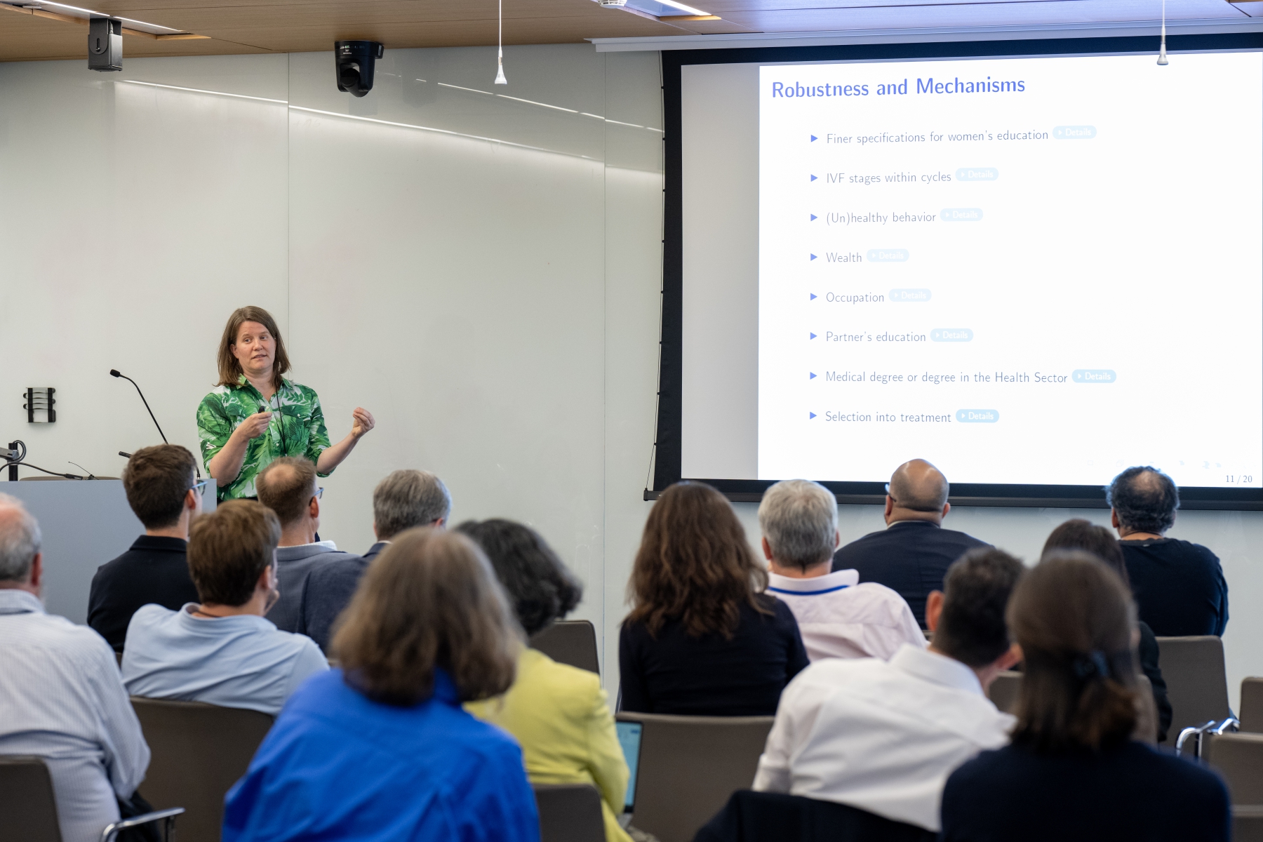 Academics and researchers from universities around the world attended to share new and original research. Highlighting Grossman’s influence among those in the room and the field at-large, Harvard Professor of Economics Pol Antràs began his own talk with a presentation of a detailed network map of Grossman’s role as a mentor in the field.