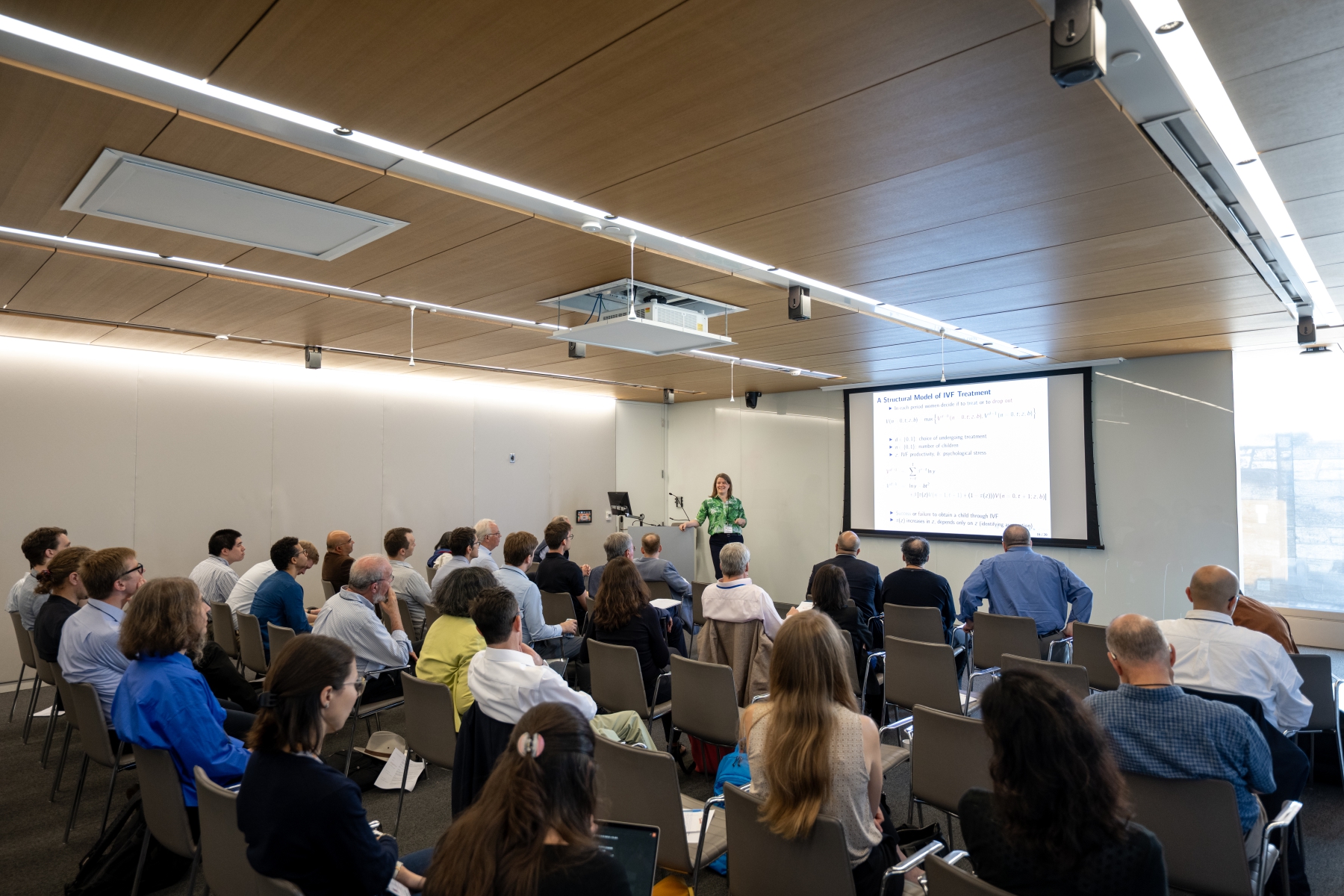 Academics and researchers from universities around the world attended to share new and original research. Highlighting Grossman’s influence among those in the room and the field at-large, Harvard Professor of Economics Pol Antràs began his own talk with a presentation of a detailed network map of Grossman’s role as a mentor in the field.