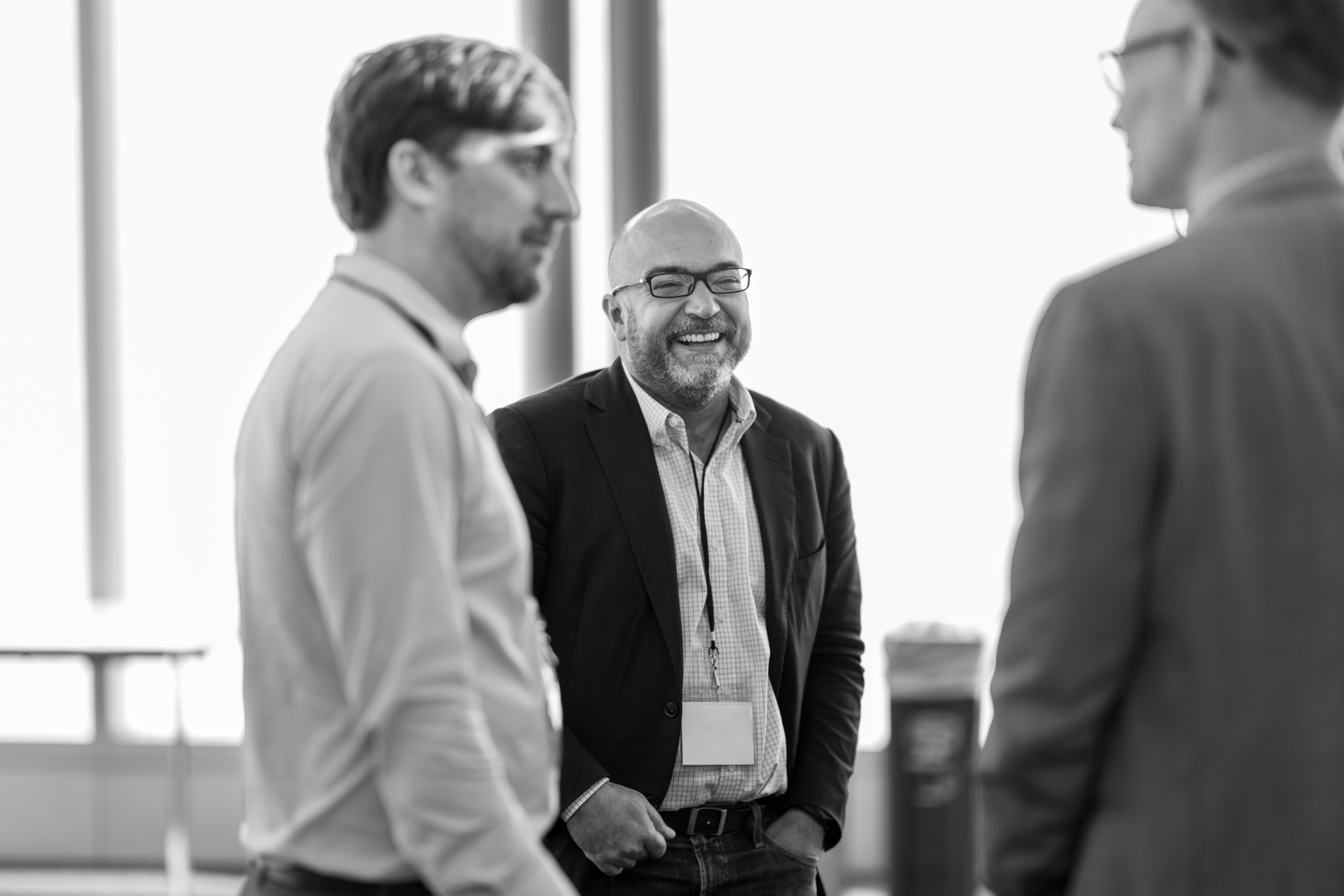 Richard Baldwin (Graduate Institute of Geneva), Dan Trefler (University of Toronto), and Paola Conconi (Oxford) take a picture with Grossman at the conference.